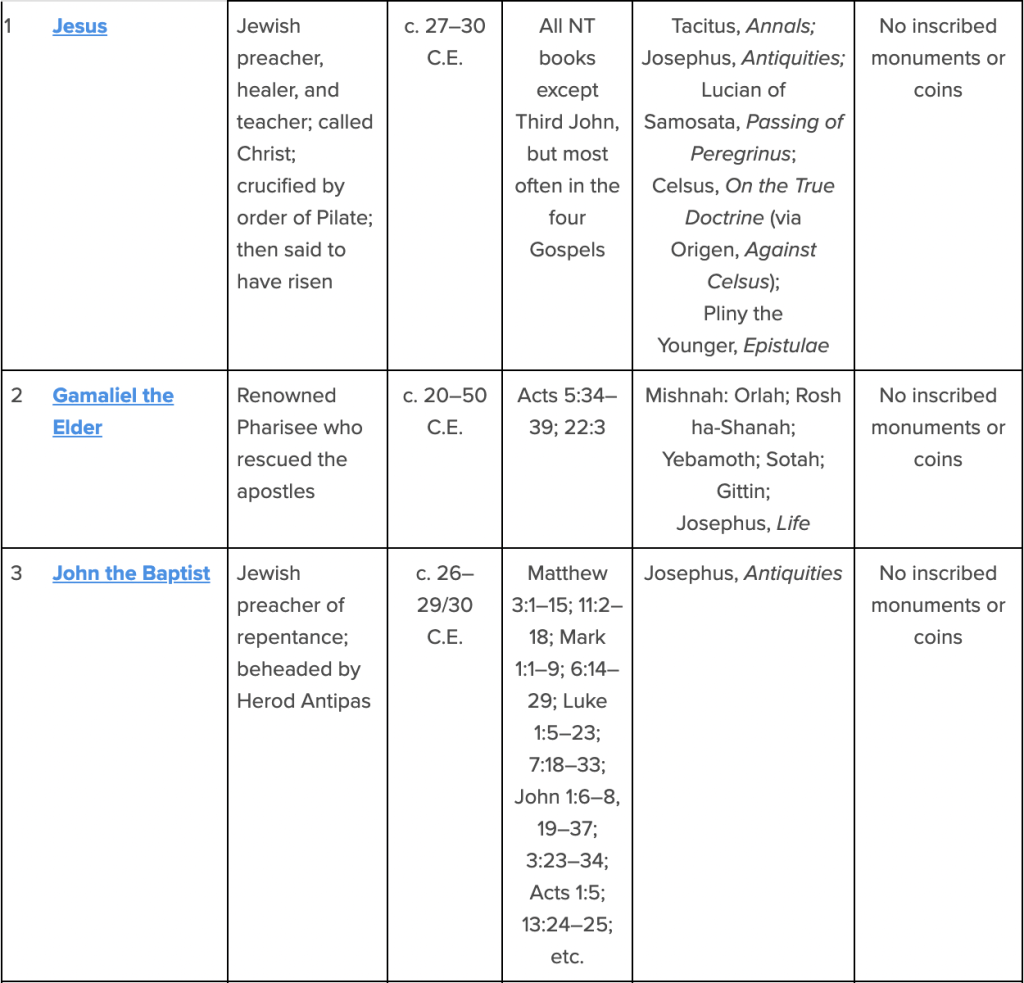 Here’s a helpful list over at Biblical Archaeology Society of the 30 New Testament people that have also been found mentioned in other sources from the period. Those other sources are letters, books, inscriptions, and coins. Here are a few takeaways from this list: